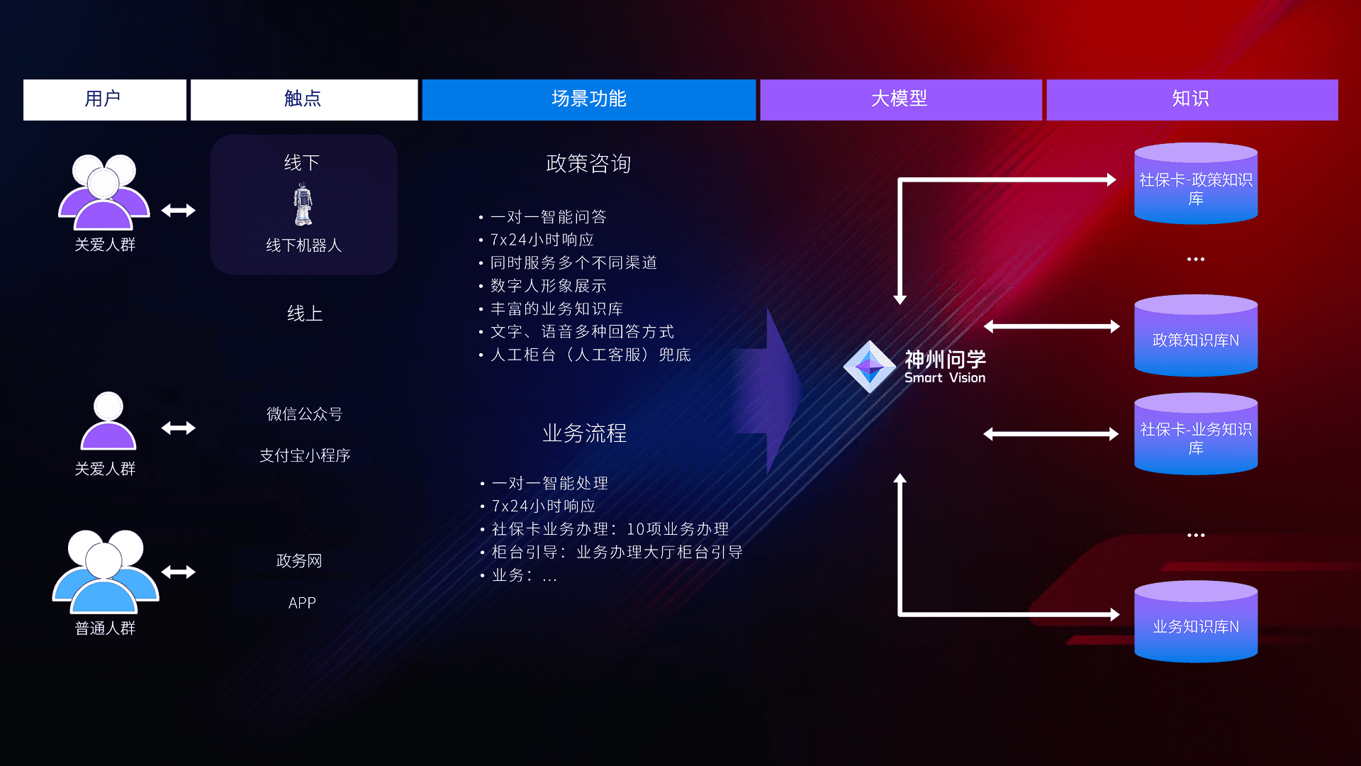 • 线上线下全覆盖:线上提供微信公众号、、、支付宝小程序、、政务网、、、app多种渠道,,与线下机器人形成完整服务体系。。